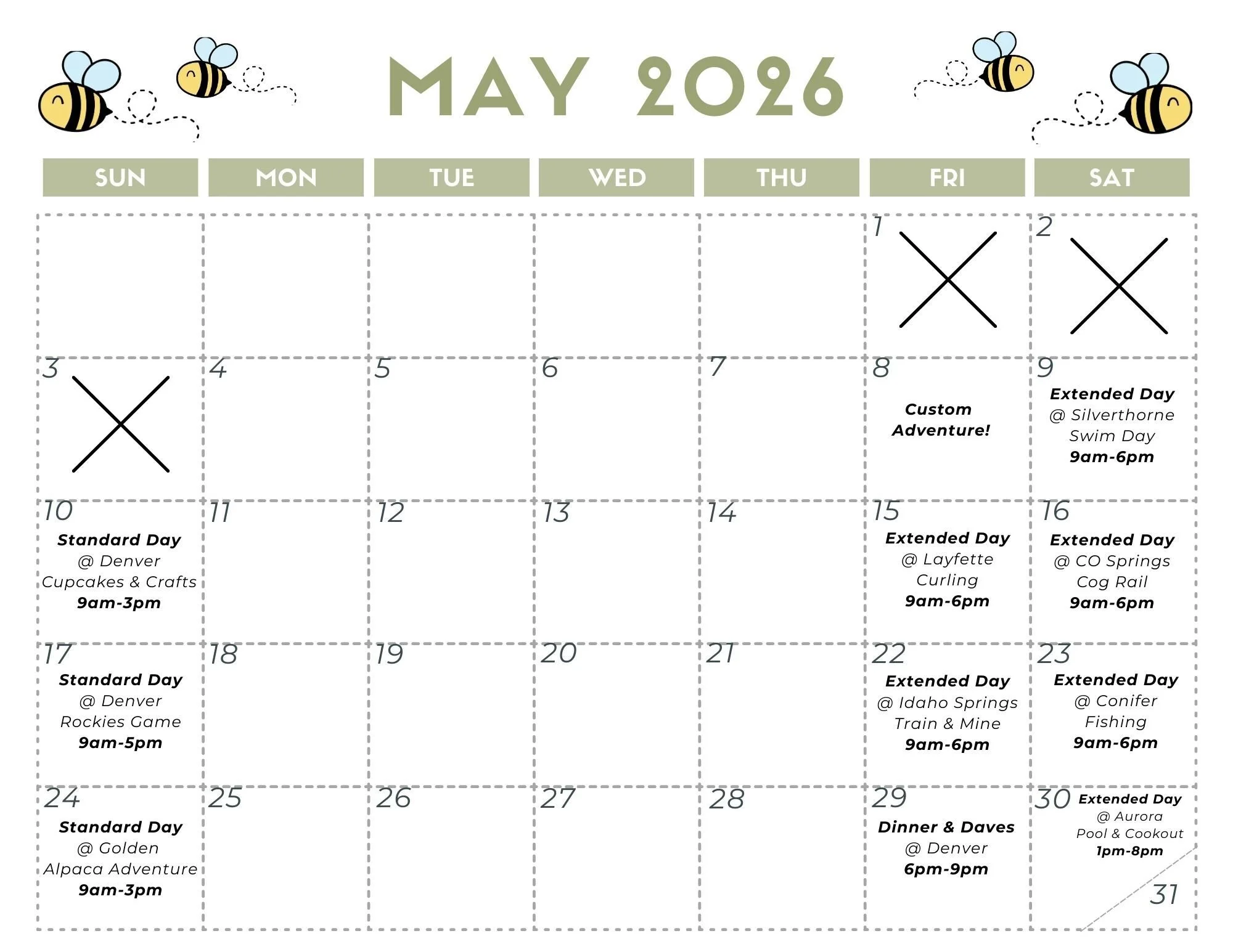 Teen & Adult Day Service Calendar
