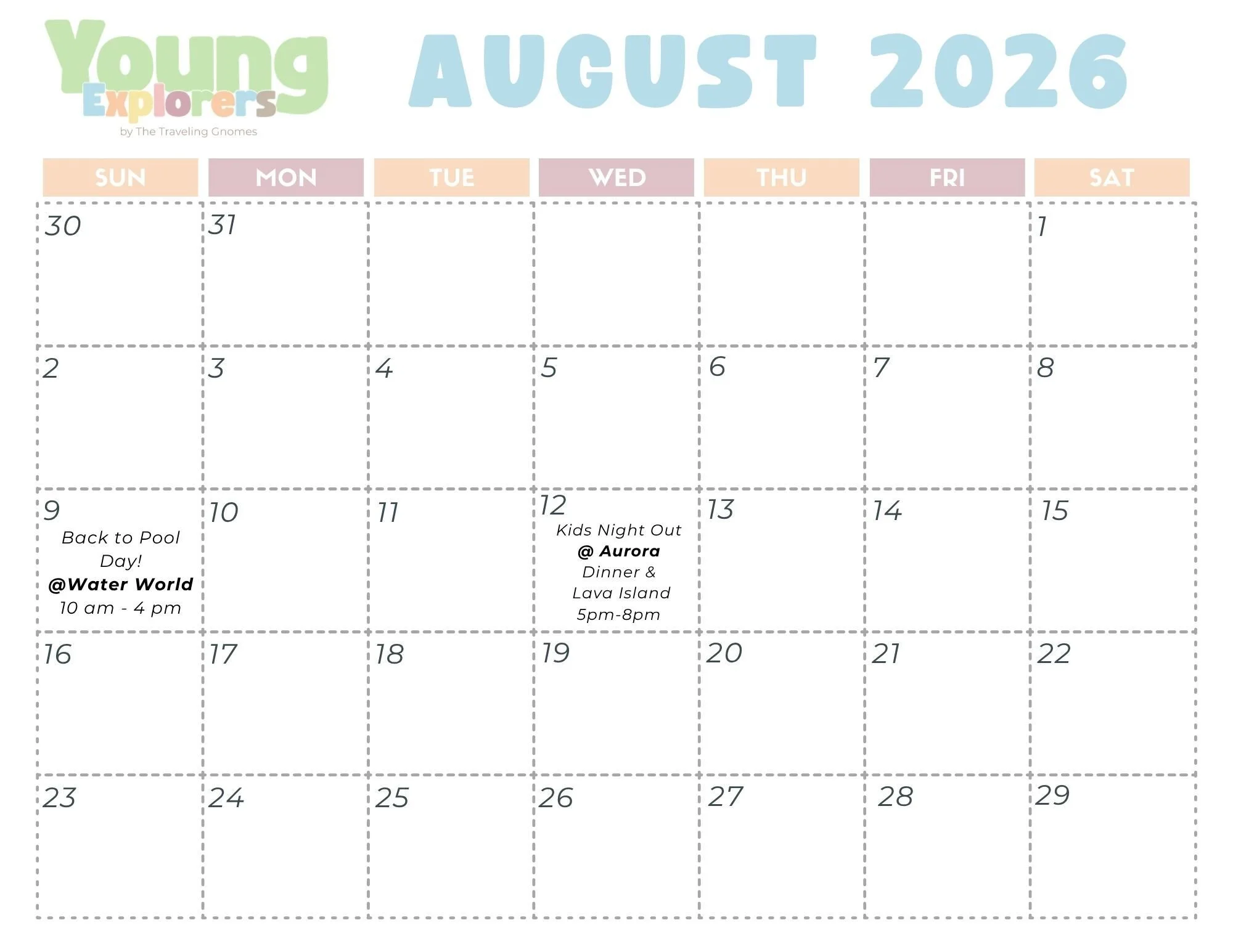 Teen & Adults Overnight Service Calendar